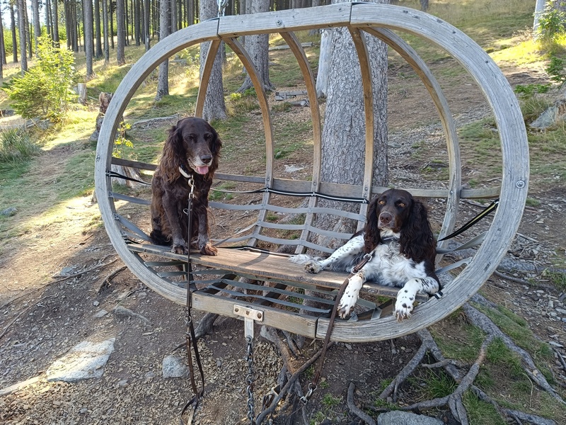 Wir hatten beschlossen mit der ganzen Familie, mit Kind und Kegel (wie man so sagt) den Schaukelweg zu laufen. Zeder war immer noch etwas Fusskrank und blieb zu Hause, Yaska und Aika durften mit. Das ist mit kleinen Kindern zeitaufwendig, Pausen für essen und trinken, und natürlich an jeder Schaukelstation spielen. Wir hatten dabei viel Wartezeiten, es war gut warm und den Hunden war es etwas fad.