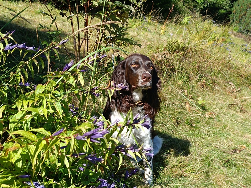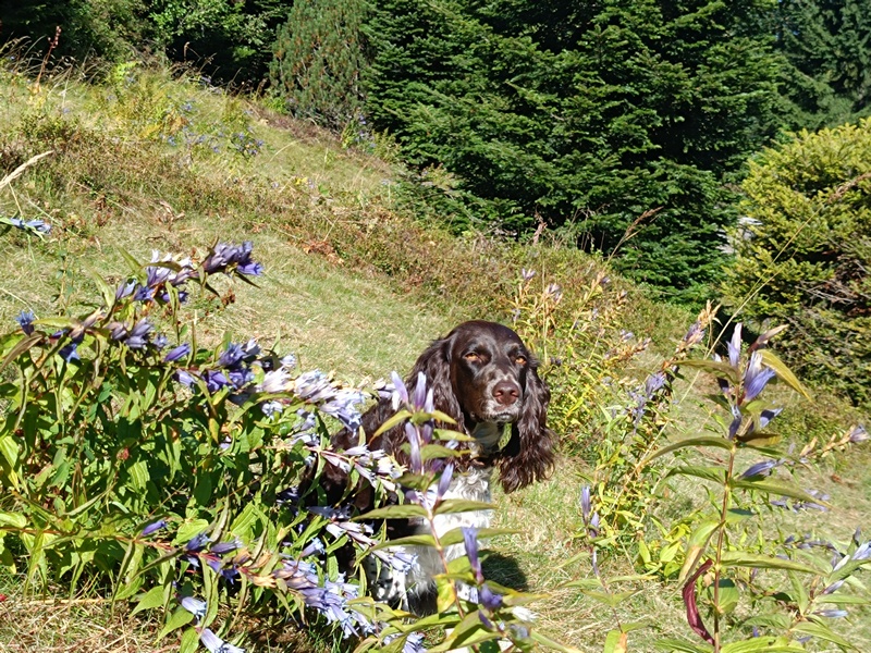 Es geht von da aus bergauf bis zum Hallerhaus. Es war mittlerweile schon Mittagszeit und man könnte eine Kleinigkeit essen. Die Terrasse sah allerdings überfüllt aus , alle Schattenplätze belegt, und mit den Hunden bleibe ich lieber im freien.